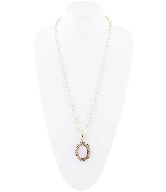 Bronze and Pink Opal Genuine Stone Long Pendant Necklace