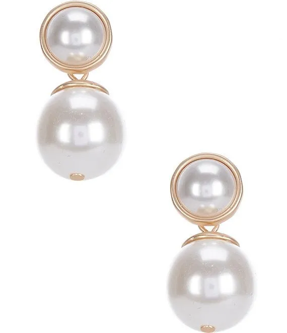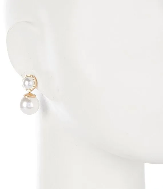 Round Metal Double Pearl Drop Earrings