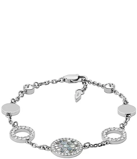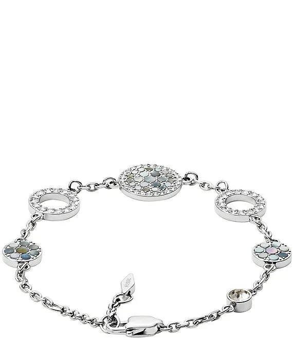 Fossil Val Mosaic Mother-of-Pearl Disc Station Crystal Line Bracelet