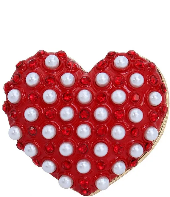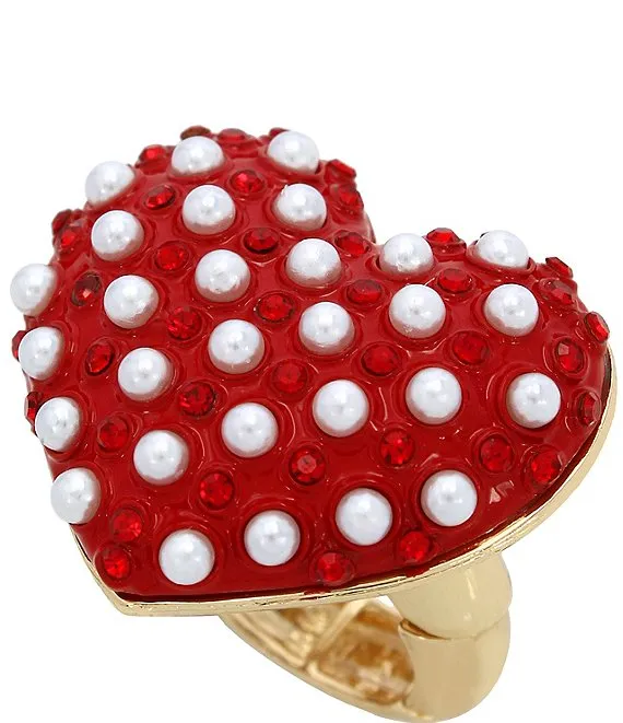 Crystal Pearl and Rhinestone Heart Cocktail Ring