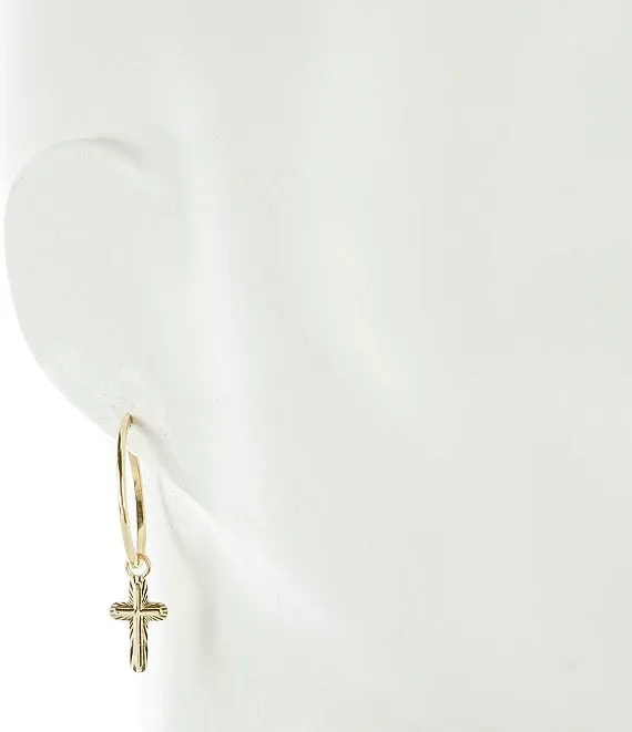 18K Gold Cross Hoop Earrings