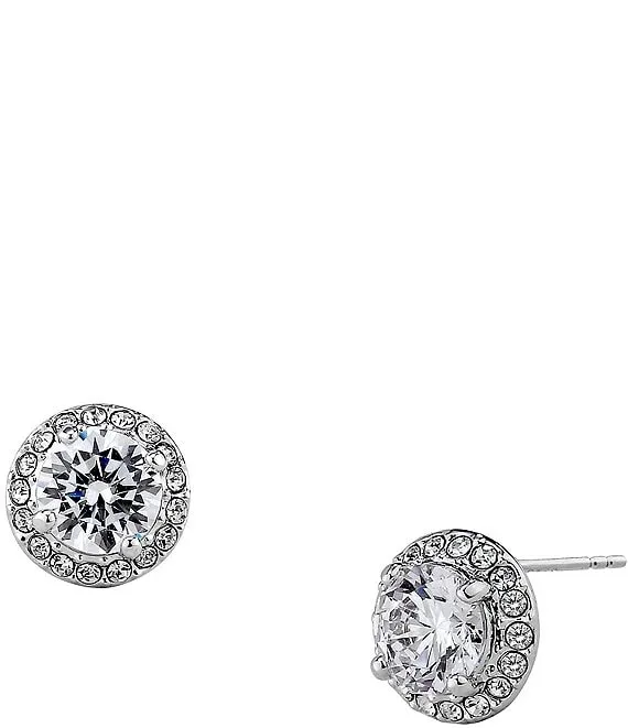 Round Halo Crystal Drop Earrings