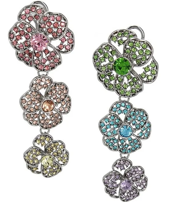 Crystal Mismatch Double Flower Statement Drop Earrings