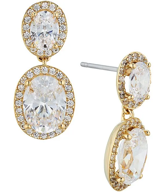 Crystal Pave Double Oval Link Drop Earrings