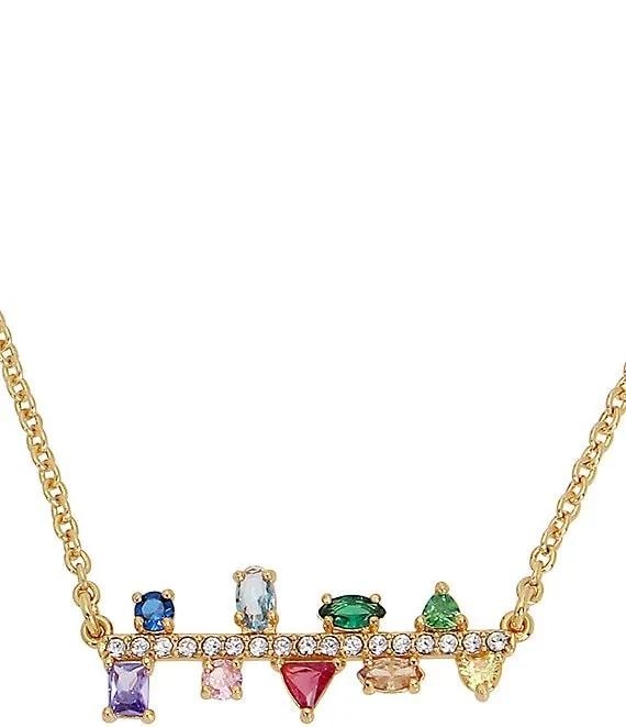 Rainbow Crystal Gem Bar Short Pendant Necklace