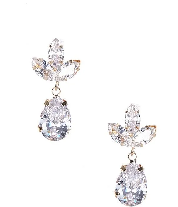 Pave Cushion Cubic Zirconia Crystal Drop Earrings