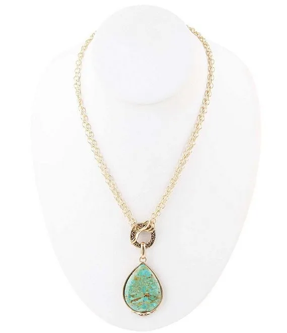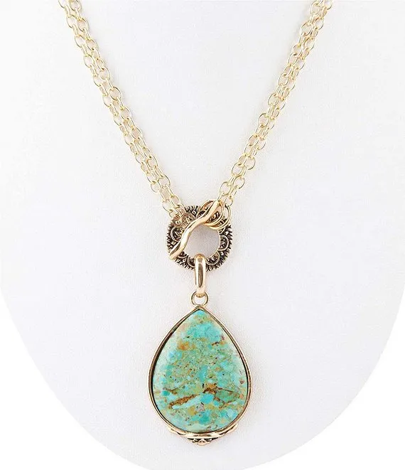 Bronze Genuine Stone Turquoise Long Pendant Statement Necklace