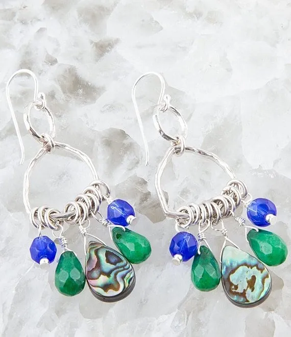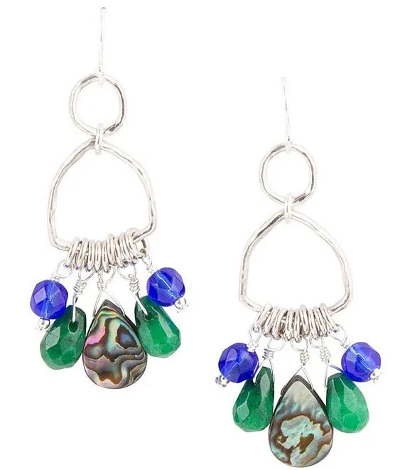 Sterling Silver and Multi Genuine Stone Chandelier Earrings