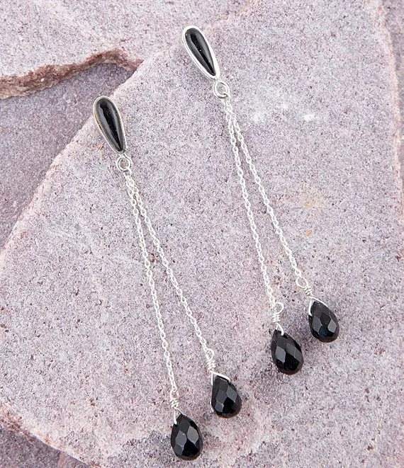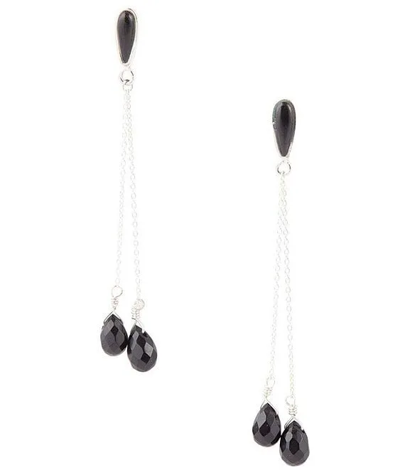 Sterling Silver and Onyx Genuine Stone Linear Earrings