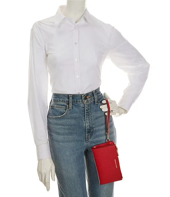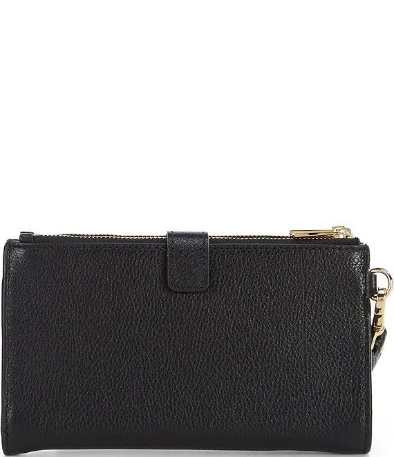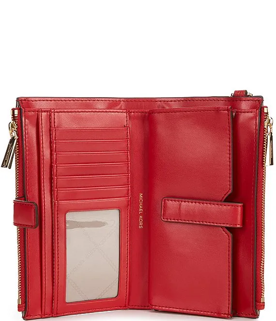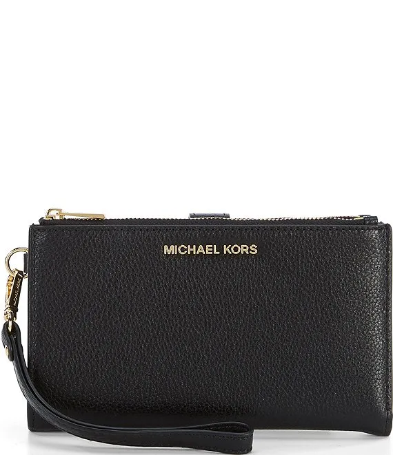 From Michael Kors, the Adele Double Zip Gold Tone Wristlet features: