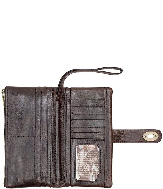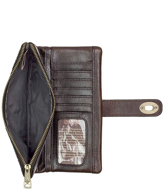 • Interior: 3 bill pockets, 1 zip pocket, 12 credit card slots, 1 clear ID window,