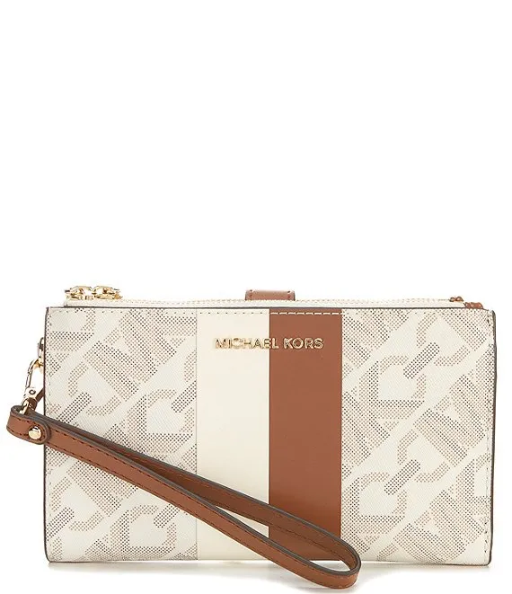 From Michael Kors, the Jet Set Double Zip Wristlet features: