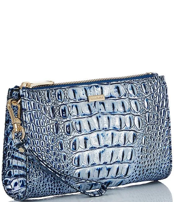 From the Melbourne Collection by BRAHMIN, the Daisy Coastal Blue Wristlet features: