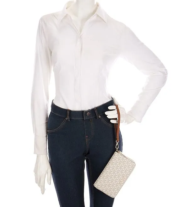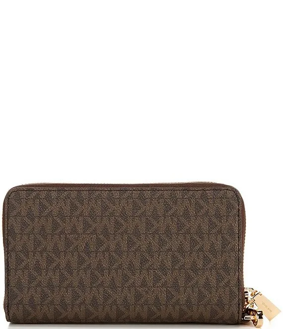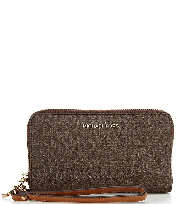 From Michael Kors, the Signature Logo Jet Set Large Flat Multifunction Wristlet features: