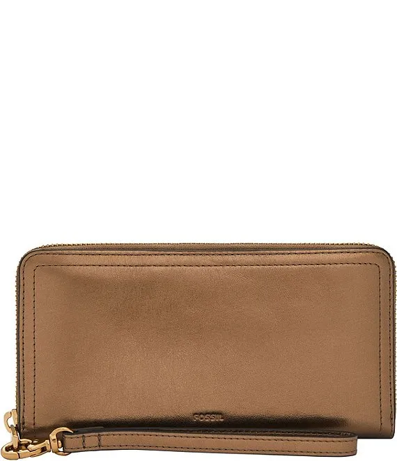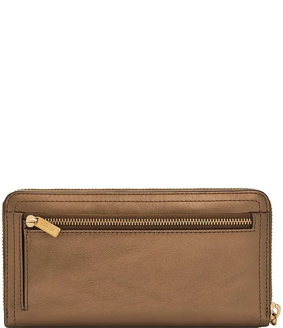 Fossil Logan RFID Zip Around Metallic Leather Wristlet