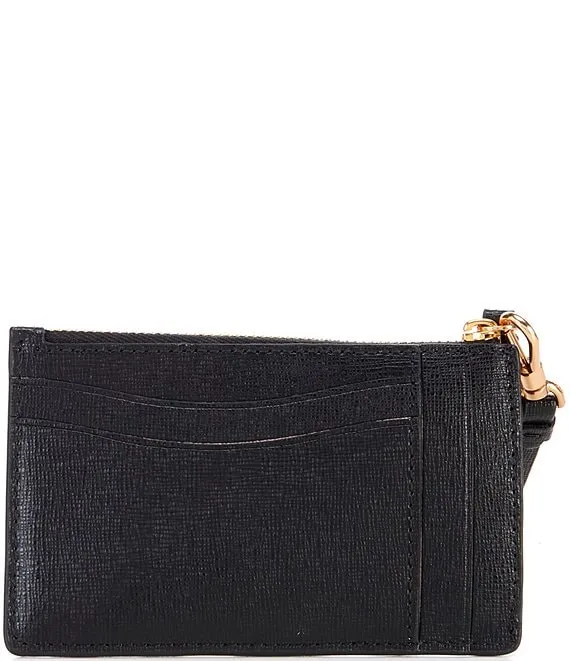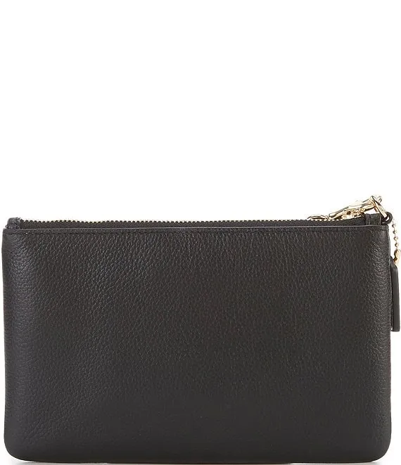 COACH Logo Polished Pebble Leather Small Zip Top Wristlet