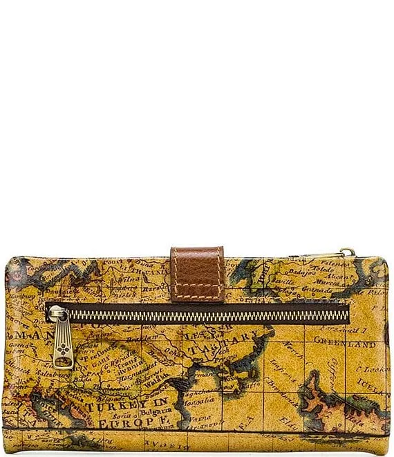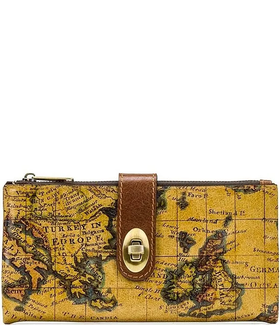 Annesley European Map Print Leather Wristlet