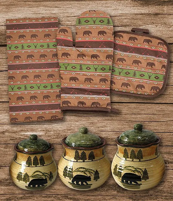 Southwest Multi Animal Print and Rustic Bear Canister, 13-Piece Set