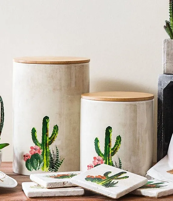 Succulent Design 2-Piece Canister Set