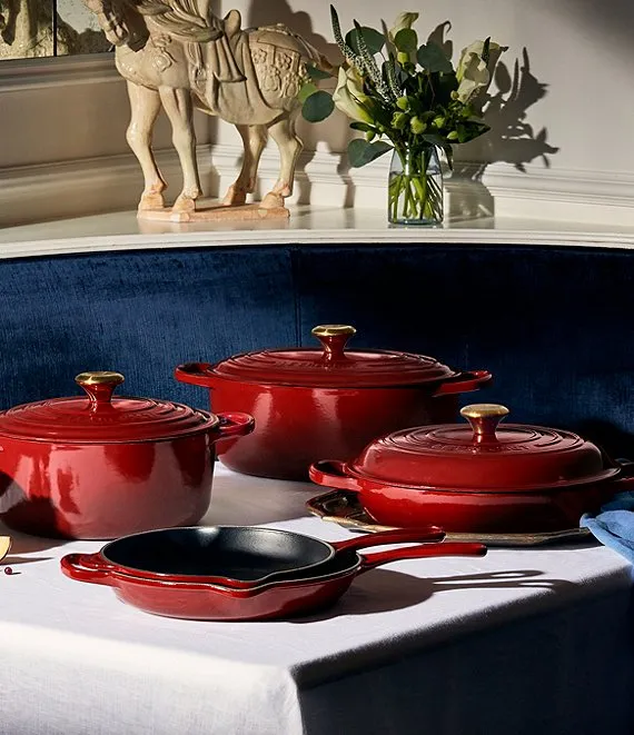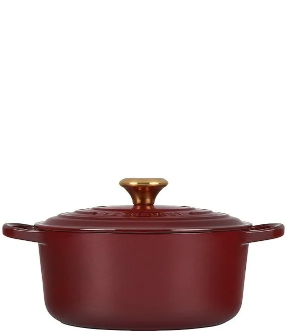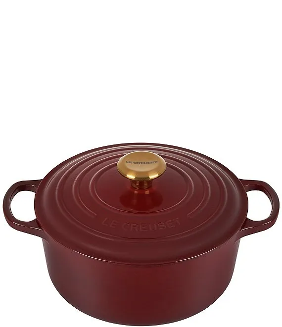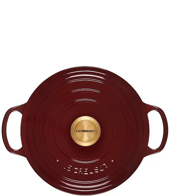 Le Creuset Signature 5.5-Quart Round Enameled Cast Iron Dutch Oven with Gold Stainless Steel Knob - Rhone