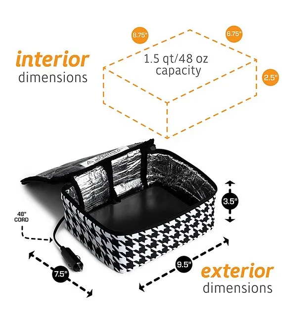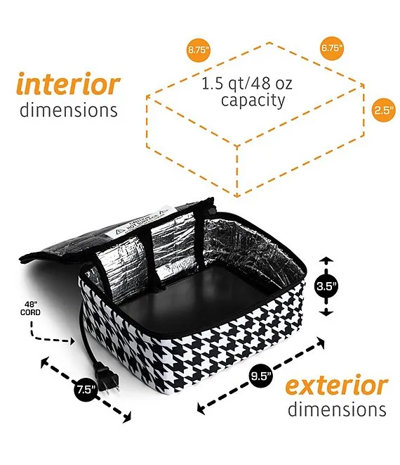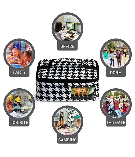 Portable Mini Oven and Food Warmer Houndstooth Print Lunch Bag 12V
