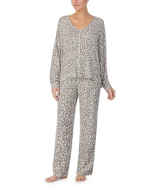 • Brushed Marl Animal Print Long Sleeve V-Neck Coordinating Sleep Top
