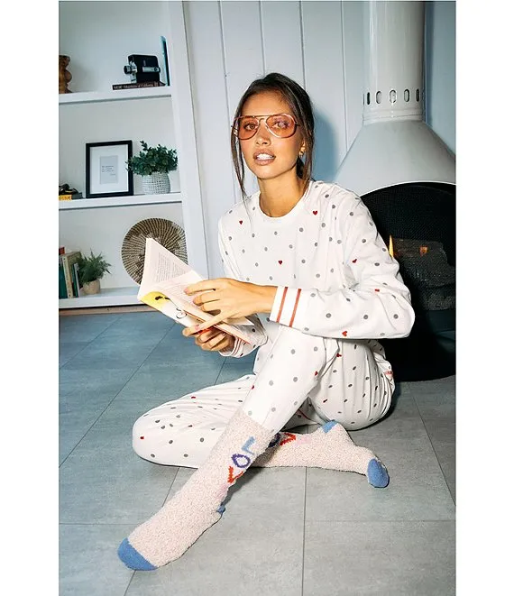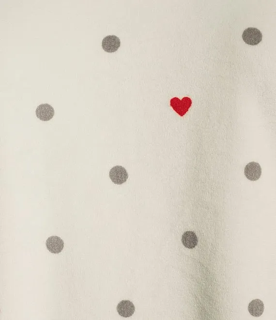 Dot/Heart Silky Velour Long Sleeve Round Neck Coordinating Holiday Sleep Top