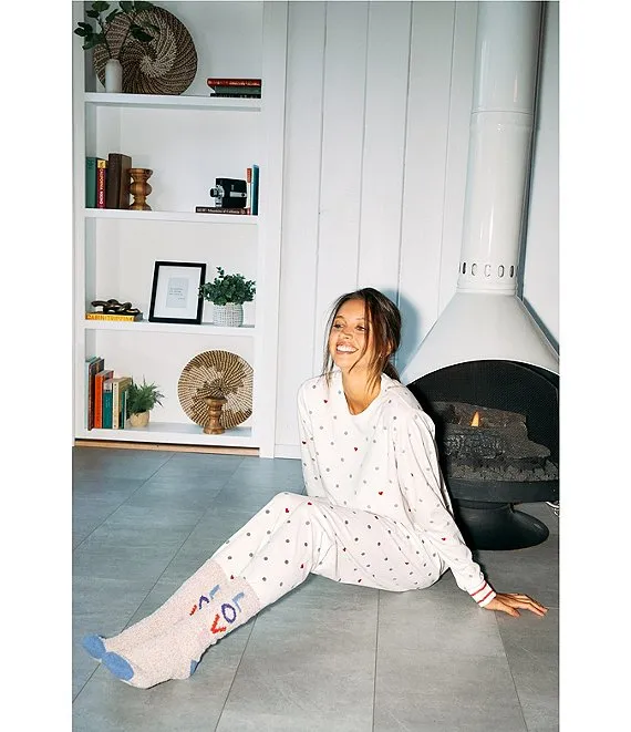 • Dot/Heart Silky Velour Long Sleeve Round Neck Coordinating Holiday Sleep Top