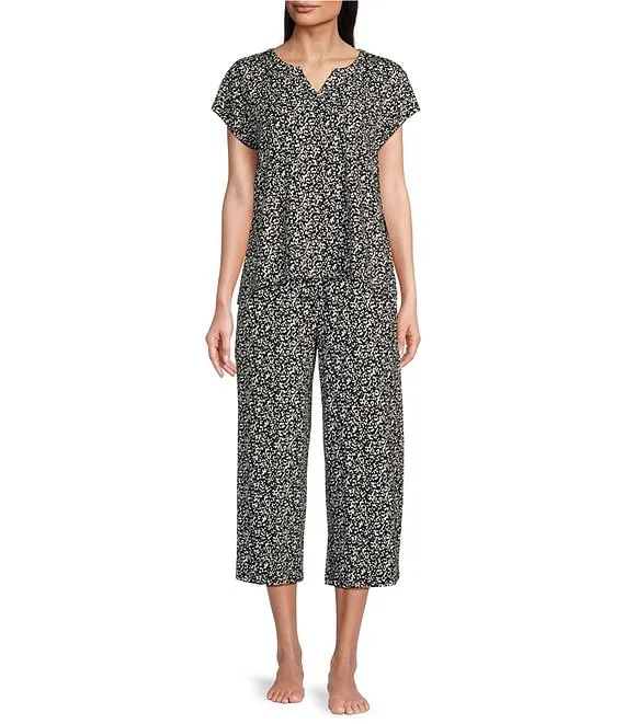 • Dotted Print Drawstring Tie Knit Coordinating Sleep Pant