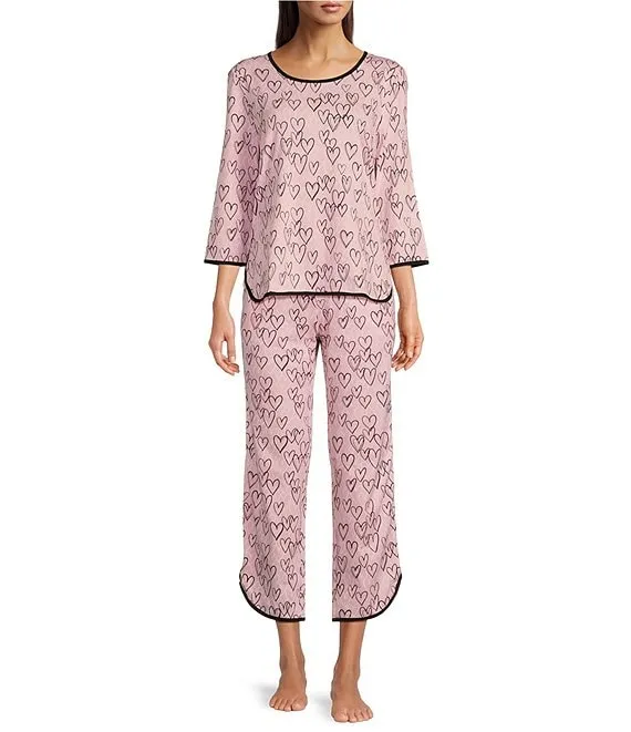 Drawn Hearts Print Coordinating Knit Sleep Pants