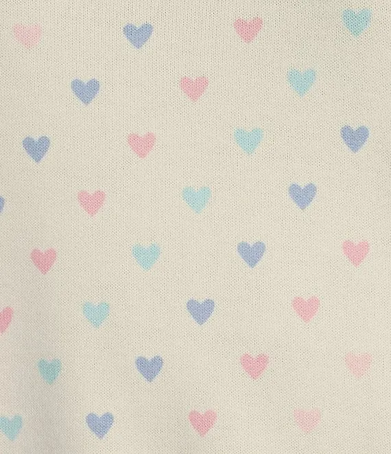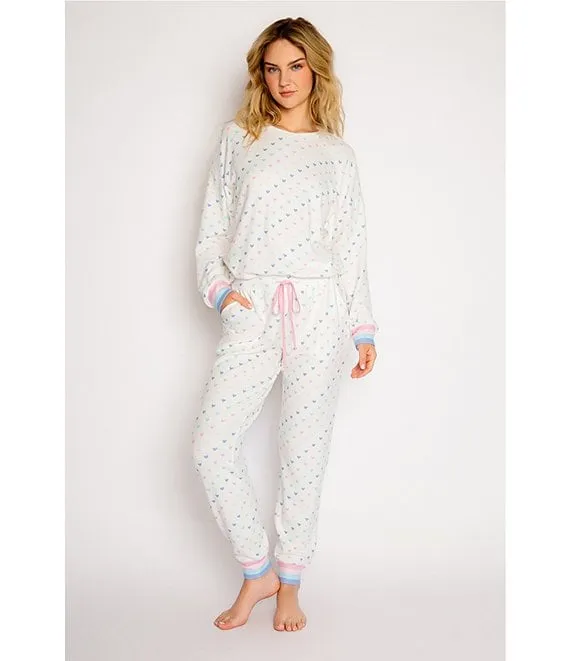 Heart Print Peachy Knit Long Sleeve Round Neck Coordinating Sleep Top
