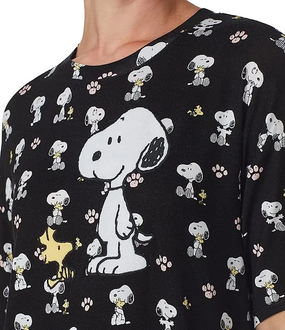 • Jersey Knit Short Sleeve Round Neck Snoopy Print Nightshirt