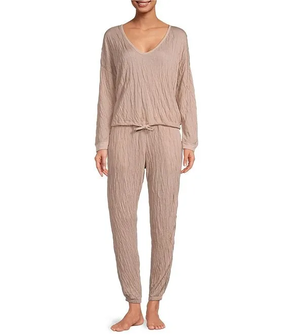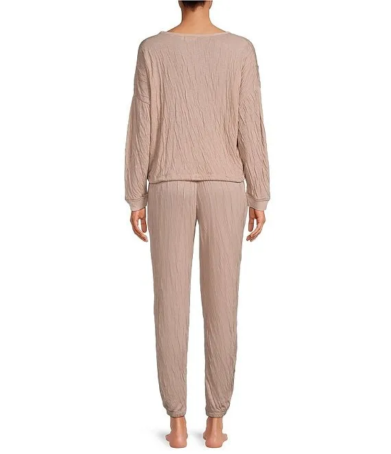 • Long Sleeve Scoop Neck Crinkled Jersey Knit Lounge Set
