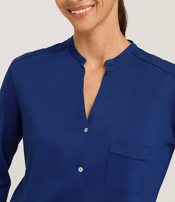 Pure Essence Long Sleeve Split V-Neck Cotton Pajama Set