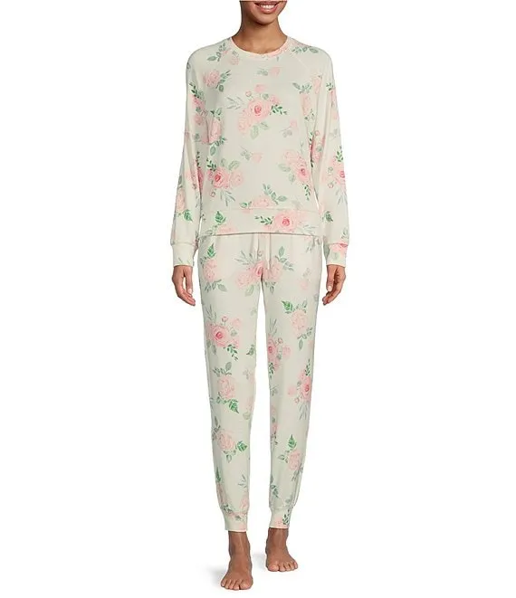 Rose Print Long Sleeve Peachy Knit Coordinating Sleep Top