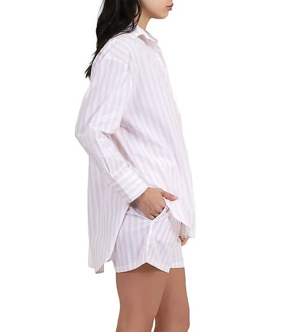 Striped Long Sleeve Notch Collar & Shorty Woven Pajama Set