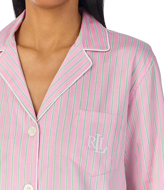 Lauren Ralph Lauren Striped Sateen Long Sleeve Notch Collar Nightshirt