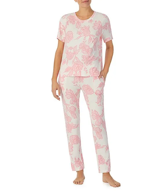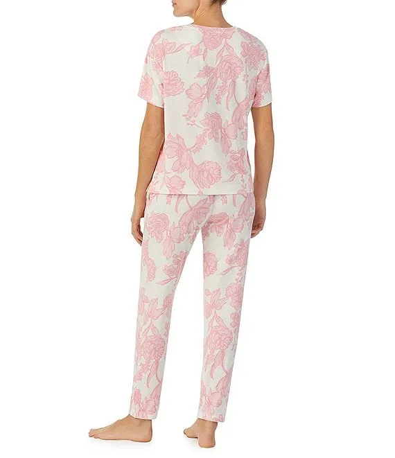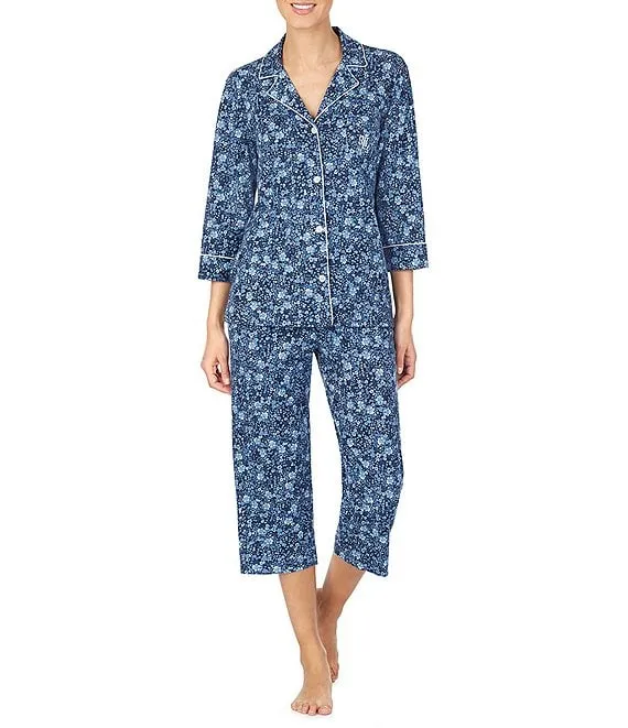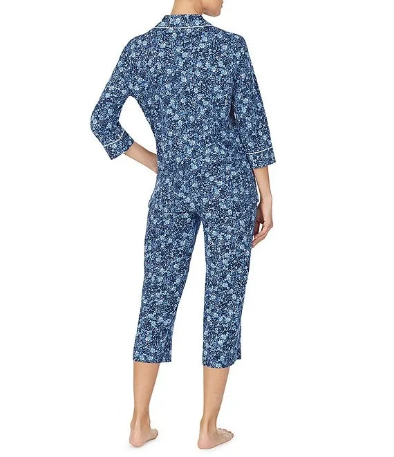 Lauren Ralph Lauren Floral Print 3/4 Sleeve Notch Collar Knit Capri Pajama Set