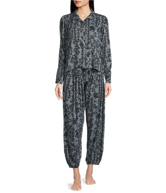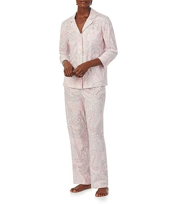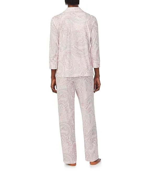 Lauren Ralph Lauren 3/4 Sleeve Notch Collar Long Pant Knit Paisley Pajama Set