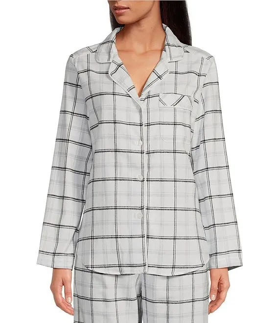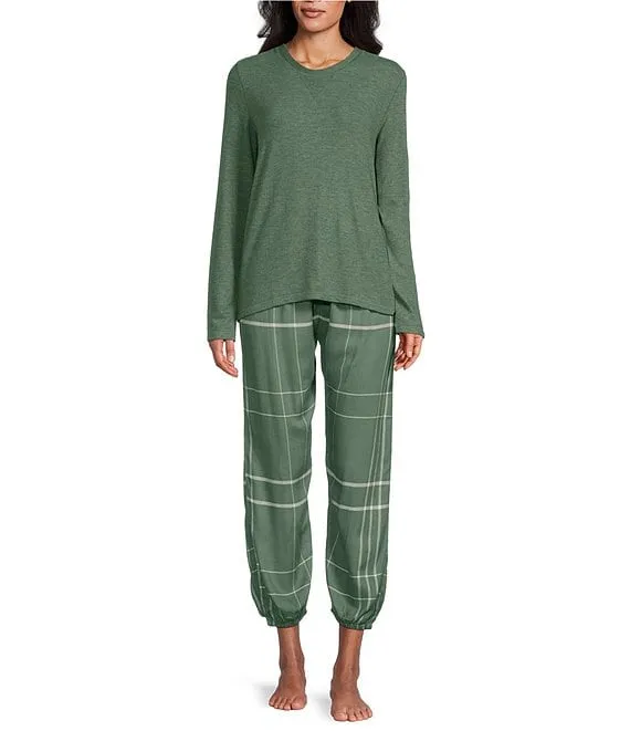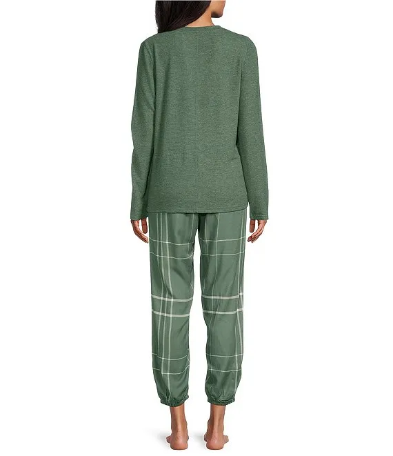 Feather Soft Long Sleeve Top & Comfy Plaid Pocketed Jogger Pajama Set