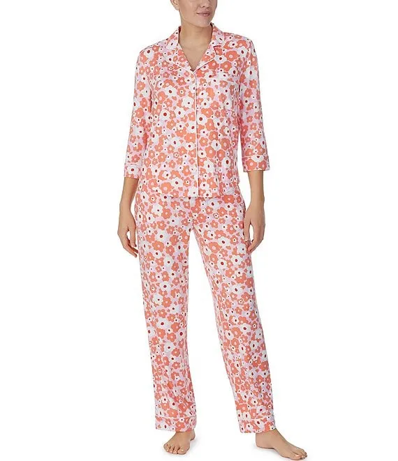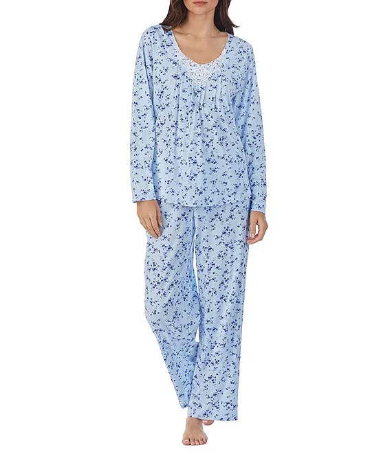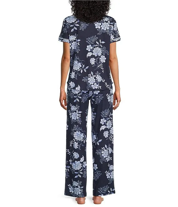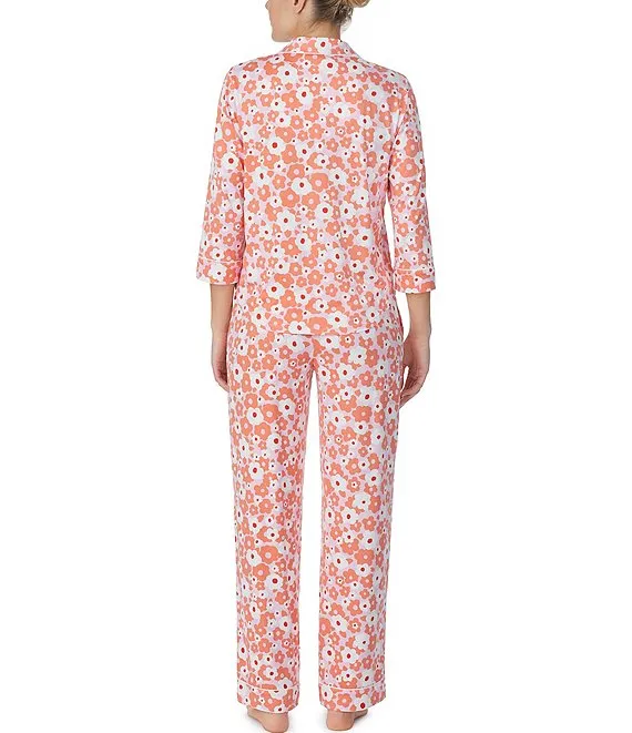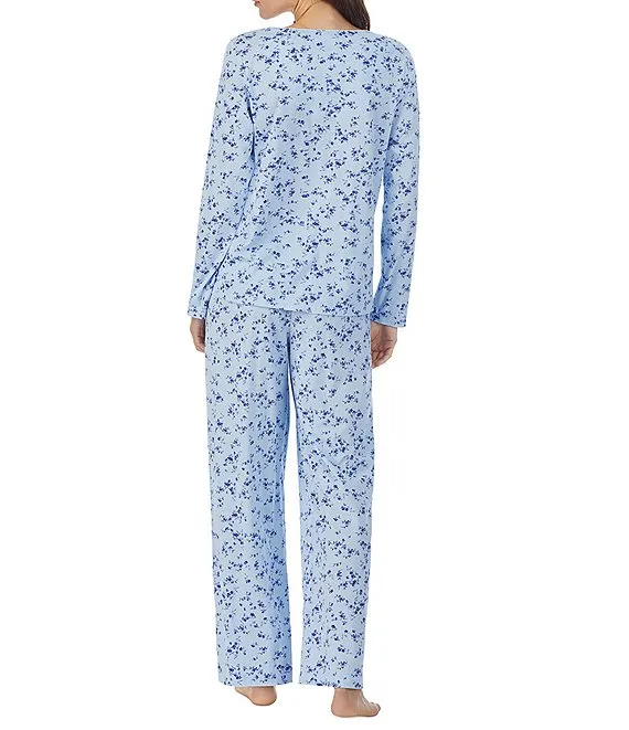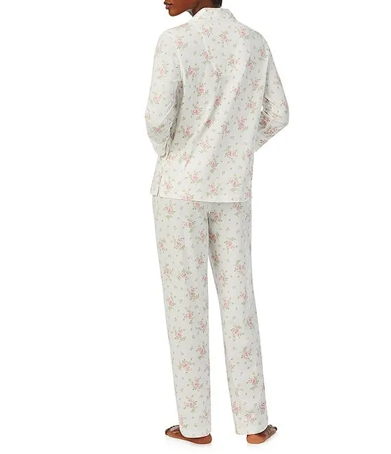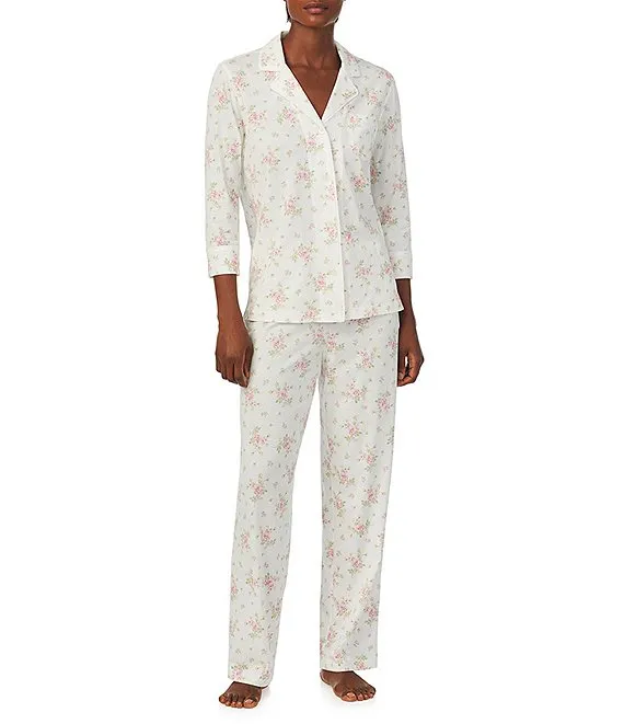 Lauren Ralph Lauren 3/4 Sleeve Notch Collar Long Pant Knit Floral Pajama Set