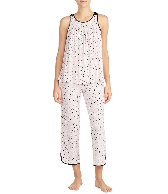 kate spade Dot Print Jersey Cropped Coordinating Pajama Set