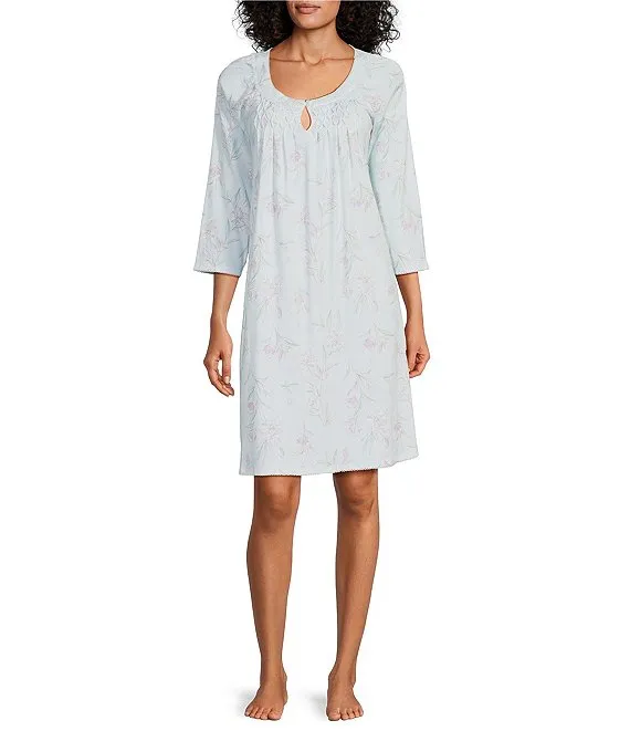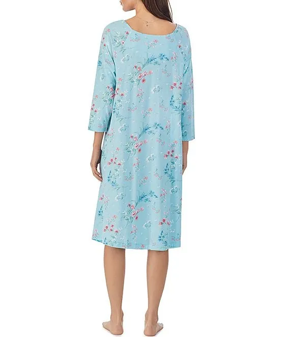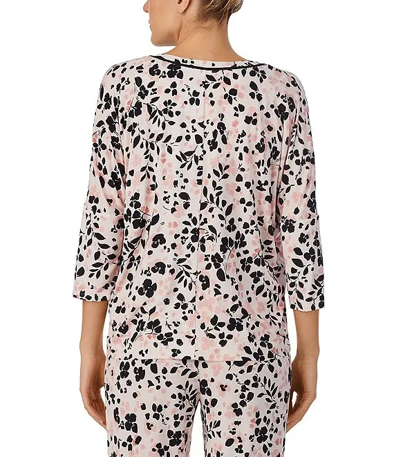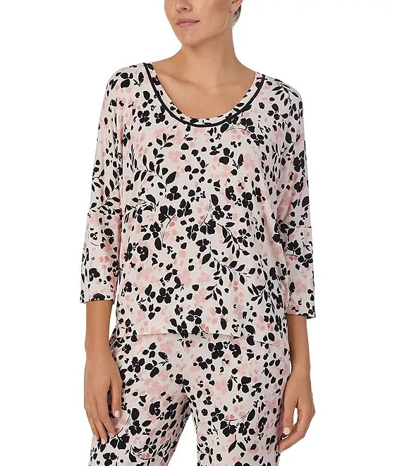Jersey Knit 3/4 Sleeve Scoop Neck Floral Print Coordinating Sleep Top