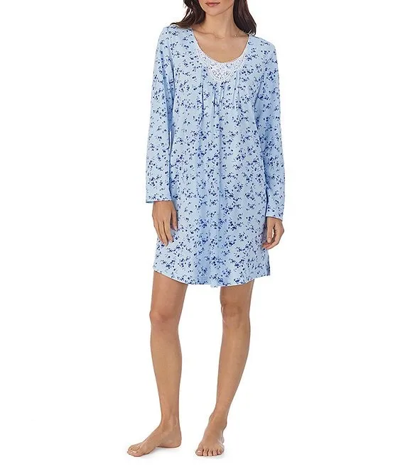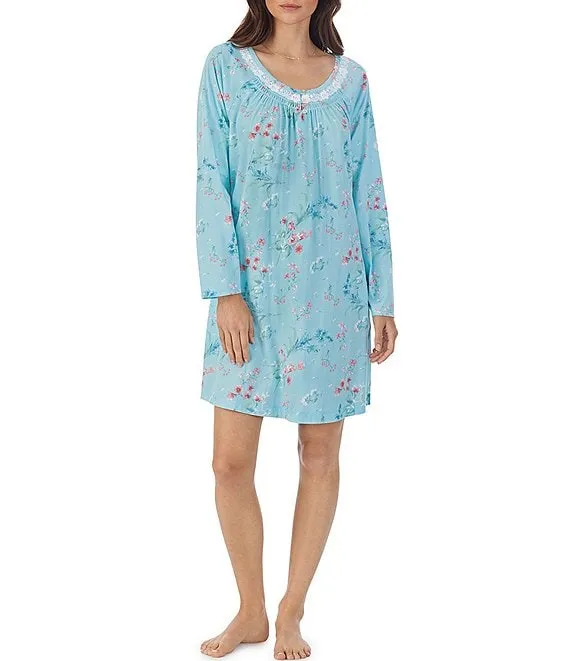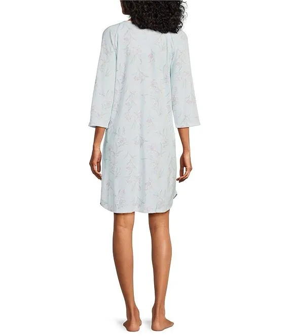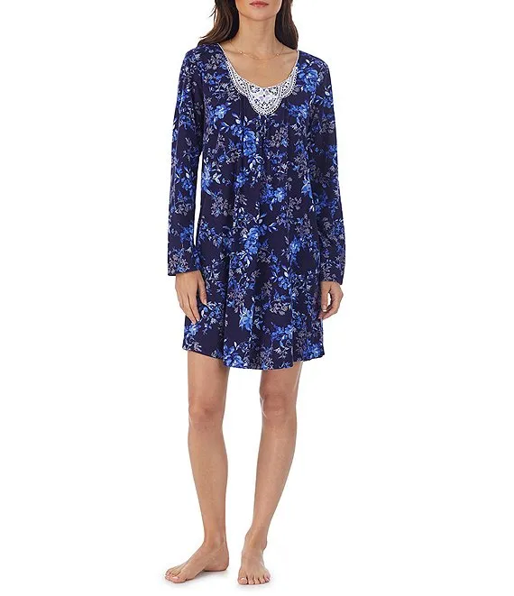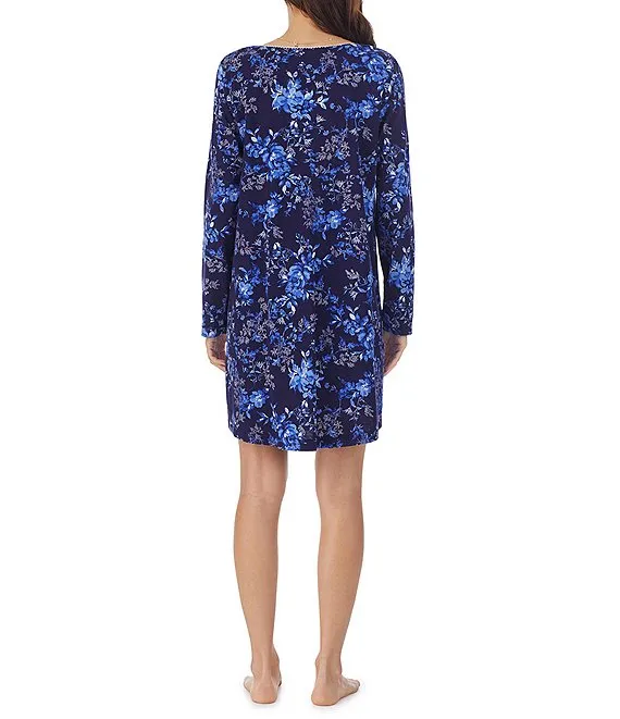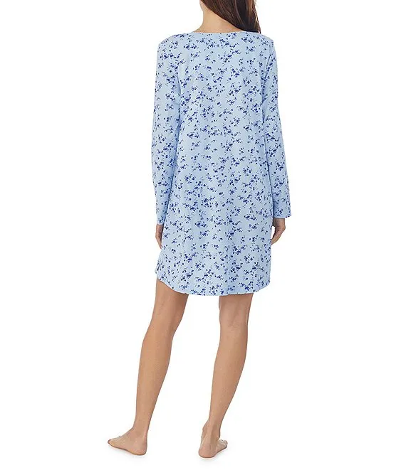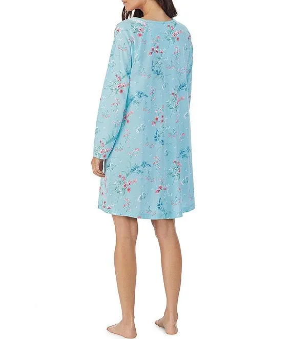 Cotton Jersey Long Sleeve V-Neck Floral Print Short Nightgown