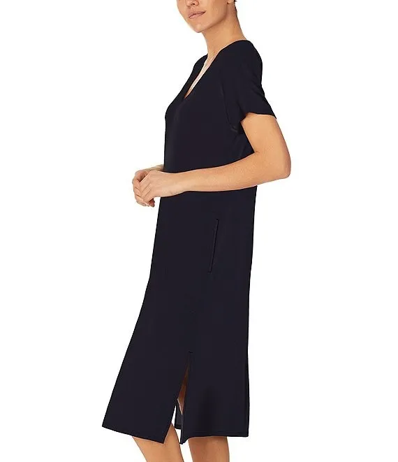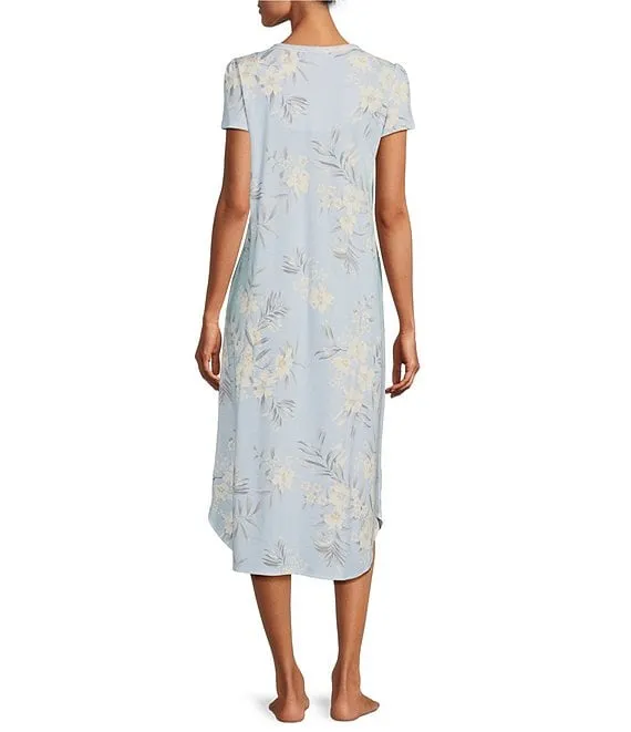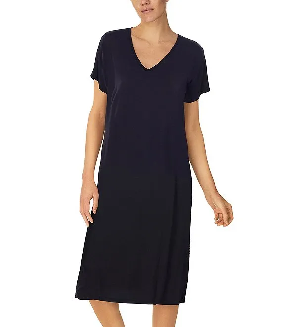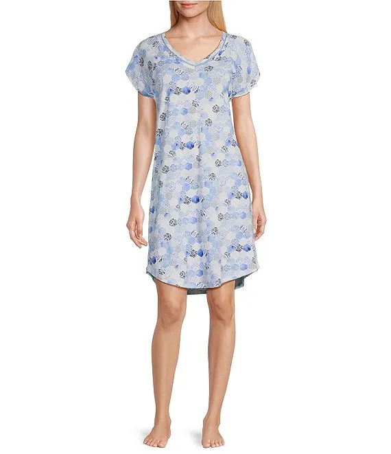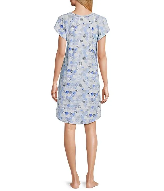 Short Sleeve V-Neck Mosaic Interlock Knit Nightshirt