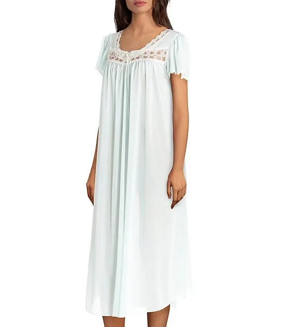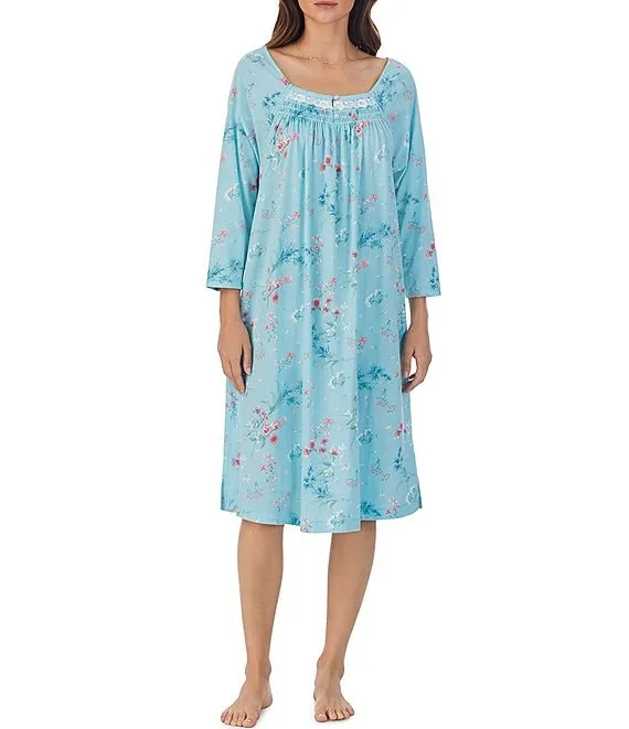 Floral Knit 3/4 Sleeve Square Neck Waltz Nightgown