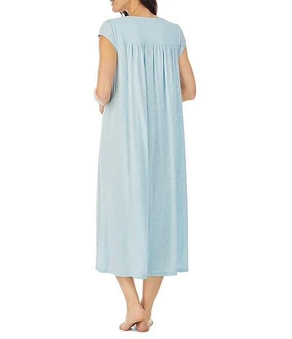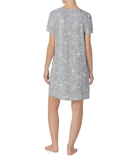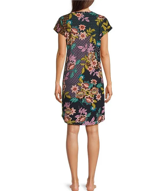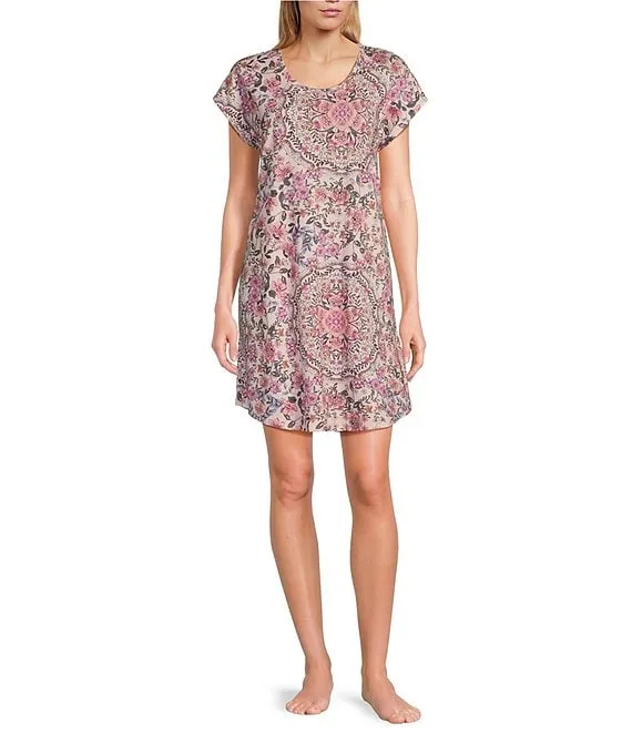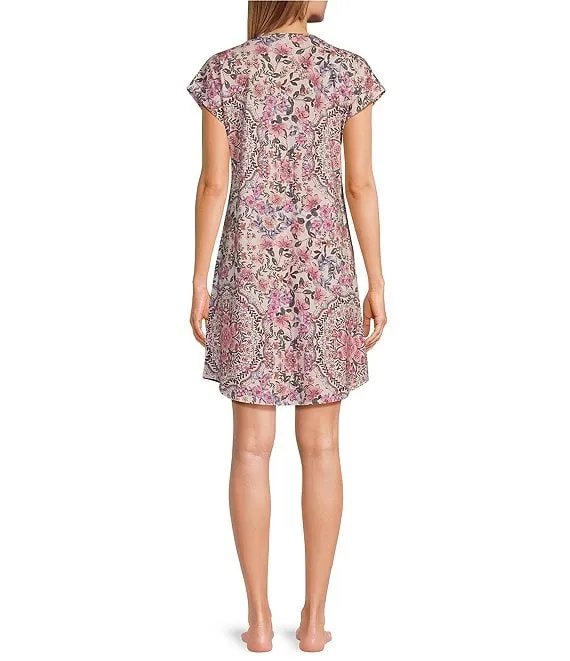 Delfino Jersey Knit Cap Sleeve Round Neck Floral Printed Nightshirt