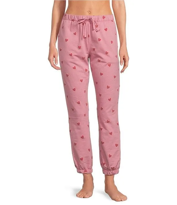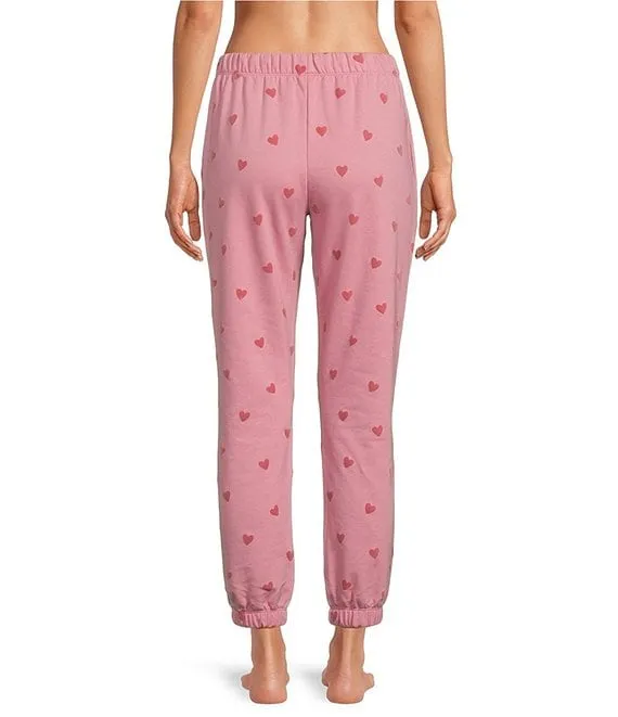 Heart Flocked Printed Drawstring Tie Coordinating Sleep Jogger