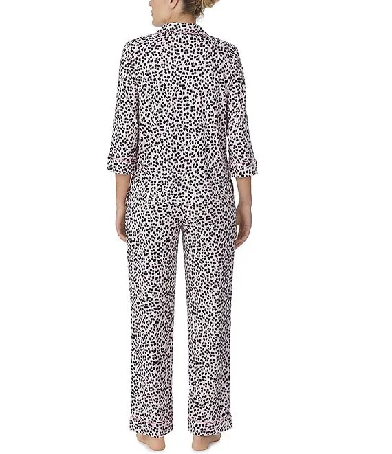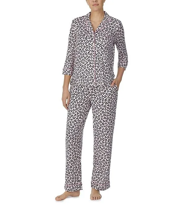 kate spade Brushed Jersey Ikat Leopard Print 3/4 Sleeve Notch Collar Coordinating Pajama Set