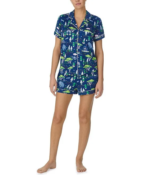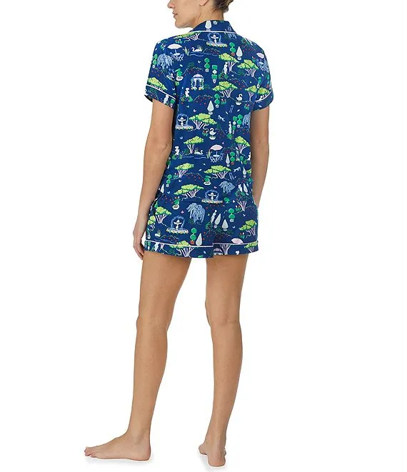 kate spade Short Sleeve Notch Collar Brushed Jersey Short Garden Print Pajama Set